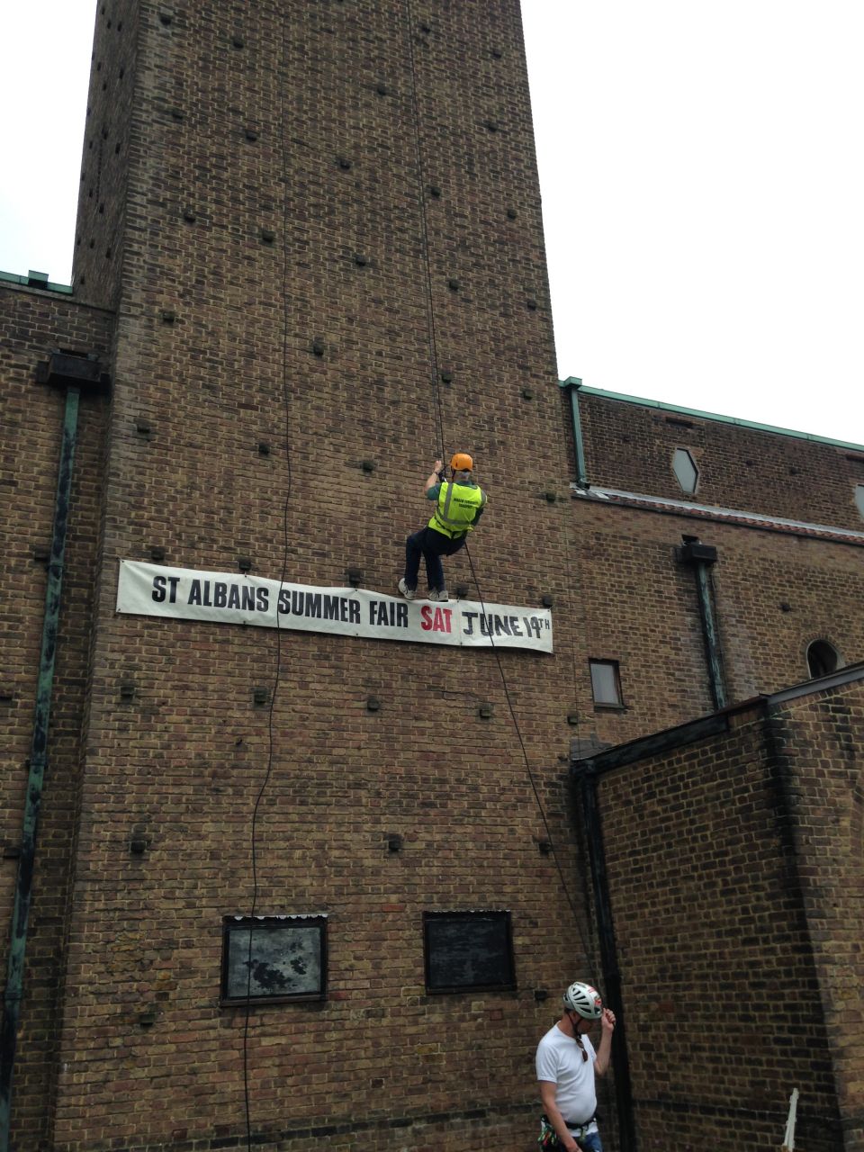 It took about four minutes for the drop, and about half an hour altogether, including the safety briefing, getting the harness and helmet on and climbing 119 steps to the launch platform on top of St.Alban's Church tower.