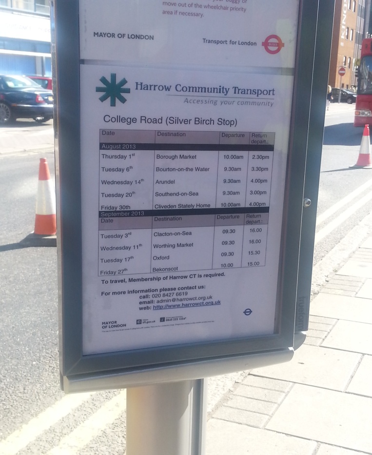 It is the first time that Transport for London (TfL) has given permission for a bus stop to be installed and used by other services than their own, in this case, Harrow Community Transport.